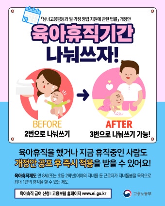 - 자녀 2명 이상: 최대 1.5년 (분할 사용 가능)